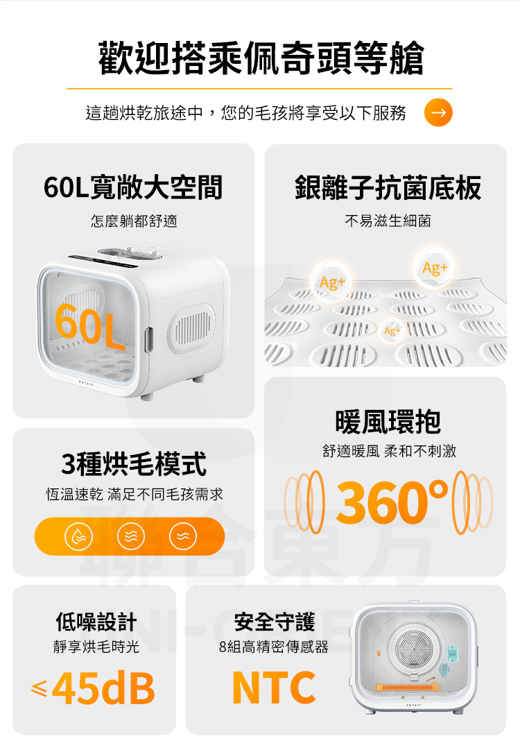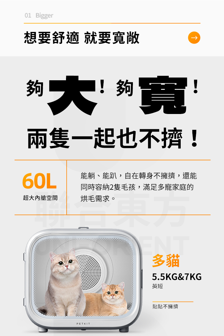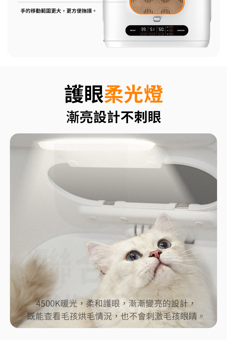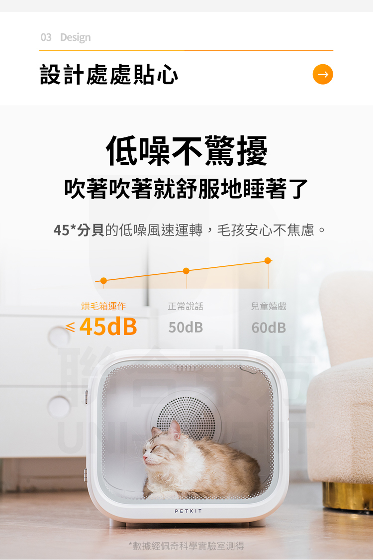 烘毛箱運作音量低於45分貝,烘毛時不驚擾毛孩