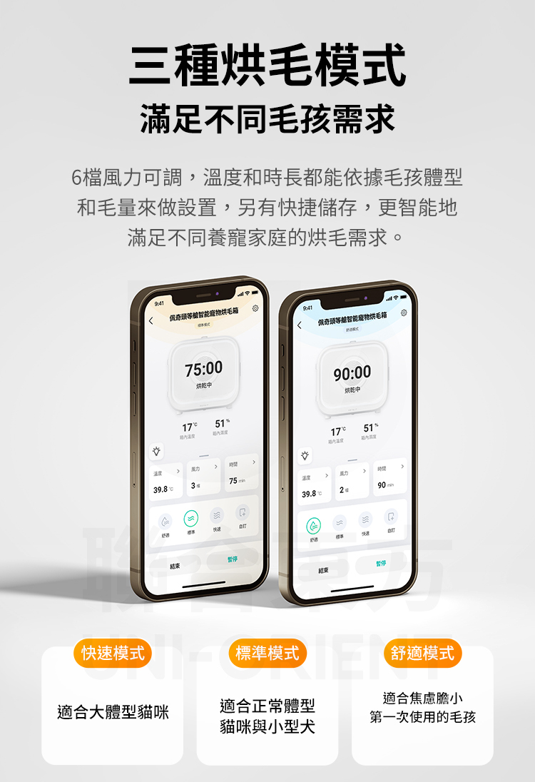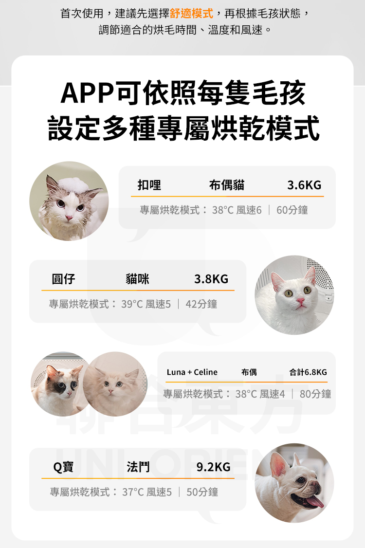 APP智能操控,可依照每位毛孩設定專屬烘乾模式