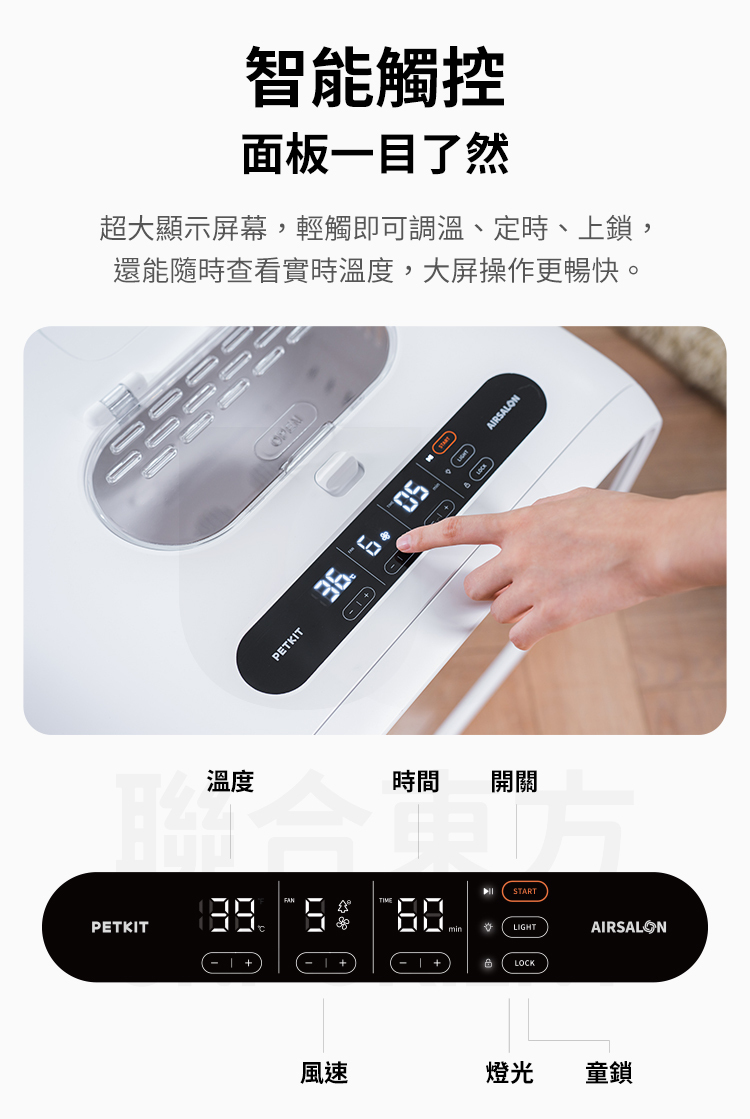6段風量,無極調溫,滿足不同毛孩的烘毛需求