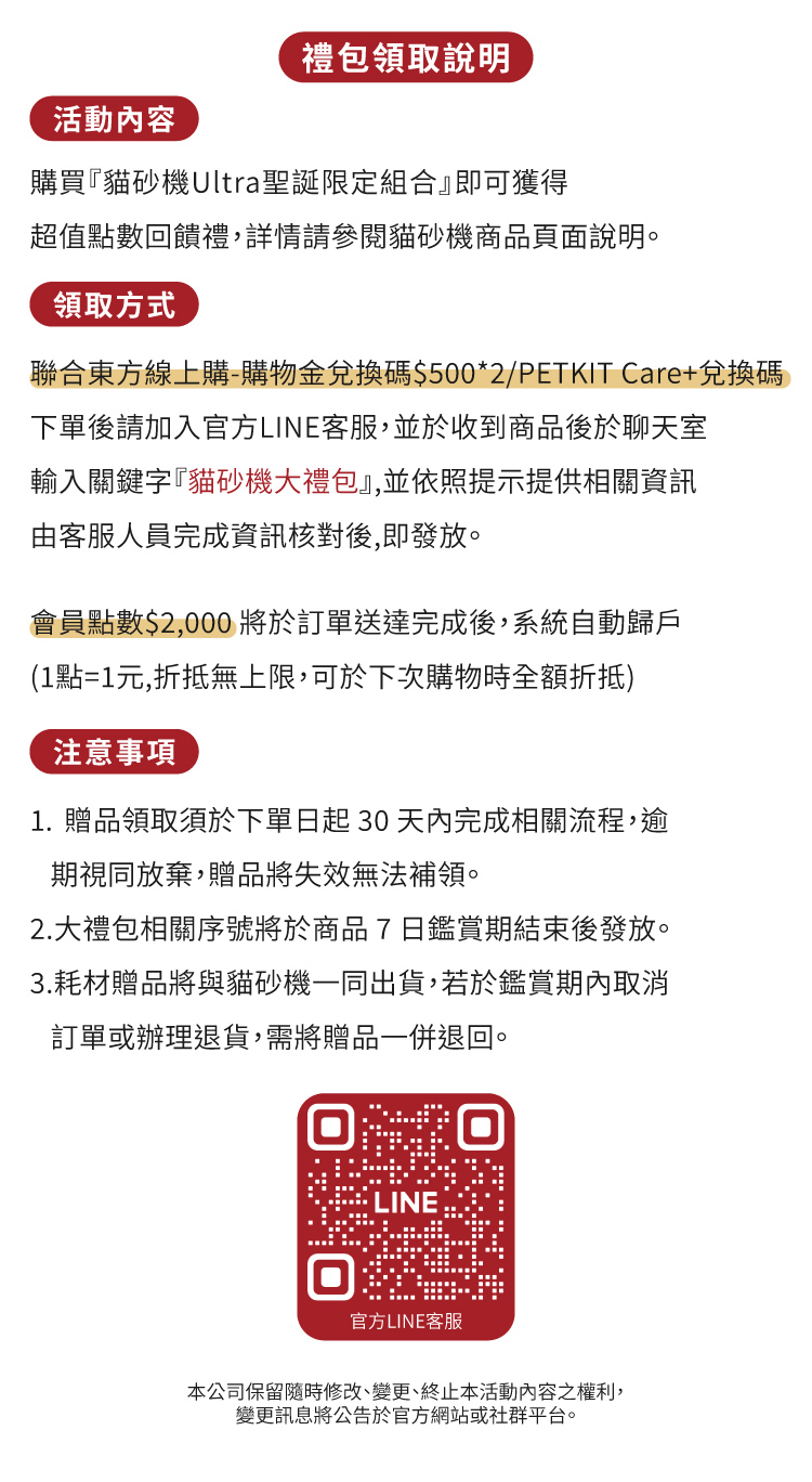 ●PETKIT care+半年保固加碼*1組 (價值$1,740)