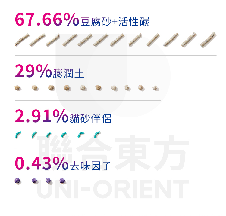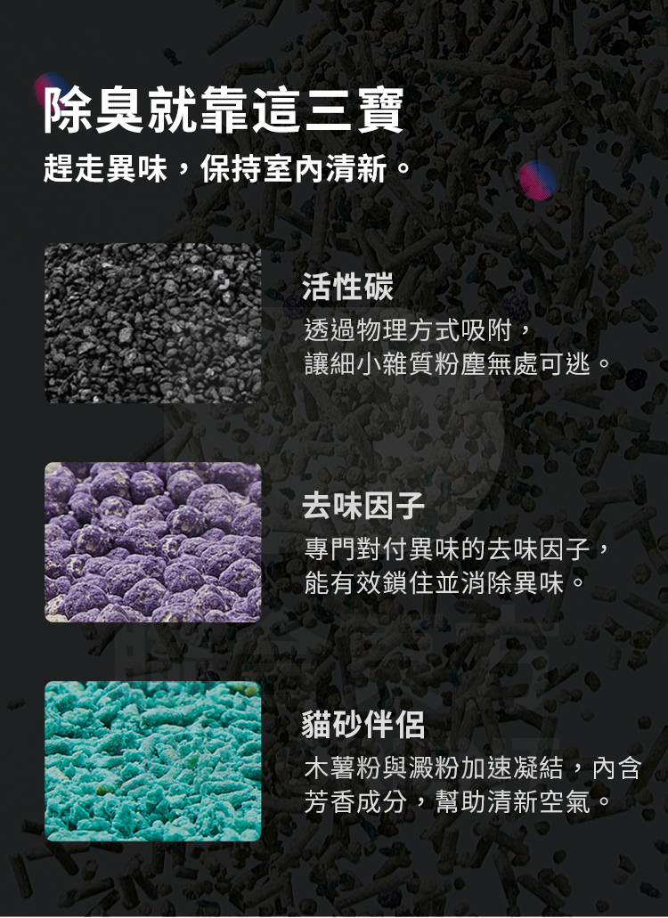 活性碳+去味因子+木薯粉&澱粉,高效除臭,保持環境清新