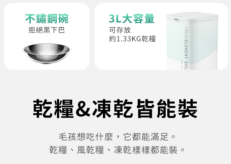 三重密封保鮮,防止乾糧受潮及蟲蟻侵入